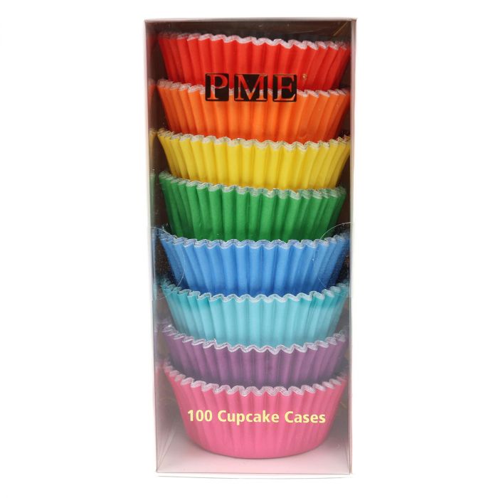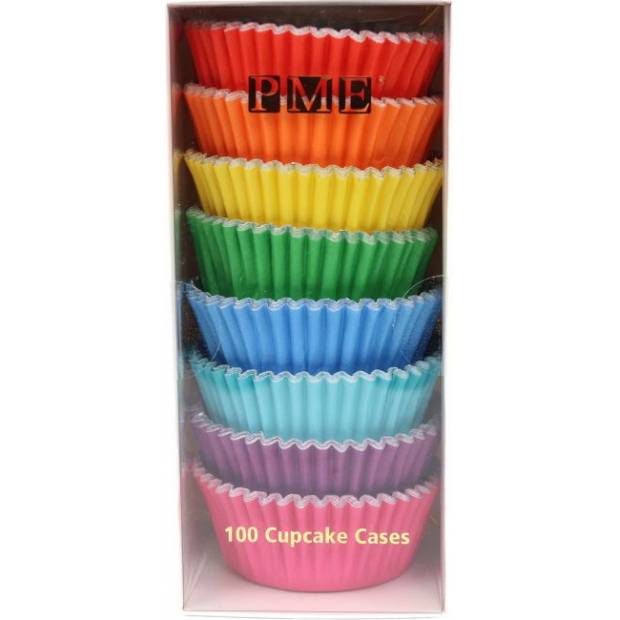 Košíčky na pečení PME Rainbow Color nabízí všechny hezké barvy duhy v jediném balení. V sadě najdete sortiment následujících barev: růžová, fialová, mátová, modrá, zelená, žlutá, oranžová a červená. Košíčky jsou vyložené fólií, aby se zabránilo prosakování tuku. Můžete je použít na pečení s pomocí formy na muffiny.