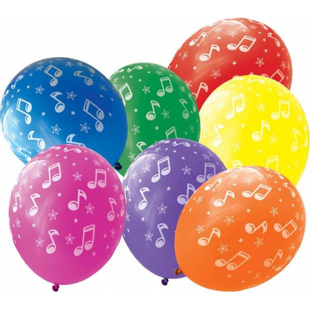 Balónky v barevném provedení s motivem notiček. 7 ks v balení.