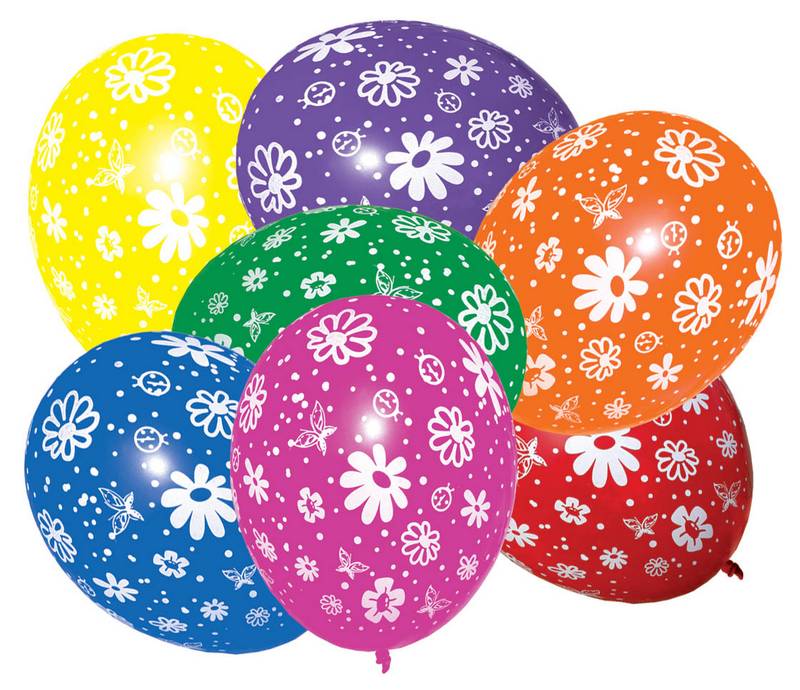 Balónky v barevném provedení s motivem kytiček. 7 ks v balení.