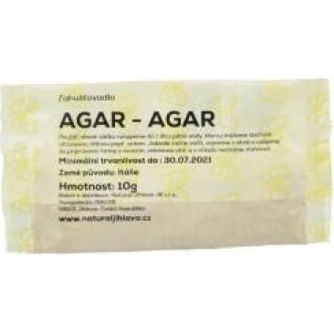 Želírovací přípravek je vyroben z mořských řas. Použití na želírování ovocných šťáv, zeleninových vývarů, ochucených vod apod. Baleno á 10g. Charakteristika: bílý až šedobílý jemný prášek bez chuti a zápachu. Možnosti použití: cukrárenské želé, pudinky, marmelády, želatinové dorty bez krému. Použití v molekulární kuchyni: zahušťovadlo s opakovaným použitím, želírující činidlo, emulgátor, stabilizátor. Není vhodný do kyselého prostředí. Návod na přípravu: odměřené množství (například 5 g agaru na 1 litr vody) se nasype do studené vody a za stálého míchání se zahřeje na teplotu 75–80 °C, kdy se plně rozpustí. Na výrobek se musí nalévat horký, při nižších teplotách hrudkovatí. Po zchlazení na 50 °C vzniká jasné, pevné, elastické želé. Pokud není spotřebováno celé množství, lze uložit v chladničce a po zahřátí na 80 °C se získá opětovně tekutá konzistence. Co možná nevíte: Agar-agar obsahuje železo, vápník, jód a další stopové prvky. Velmi účinně snižuje cholesterol., je vhodný pro osoby s vysokým tlakem. Když prochází agar-agar zažívacím traktem, sbírá staré usazeniny a čistí vnitřnosti. Při vysoké konzumaci má mírně projímavé účinky a je velmi snadno stravitelný. Charakteristika: bílý až šedobílý jemný prášek bez chuti a zápachu. Možnosti použití: cukrárenské želé, pudinky, marmelády, želatinové dorty bez krému. Použití v molekulární kuchyni: zahušťovadlo s opakovaným použitím, želírující činidlo, emulgátor, stabilizátor. Není vhodný do kyselého prostředí.Co možná nevíte: Agar-agar obsahuje železo, vápník, jód a další stopové prvky. Velmi účinně snižuje cholesterol., je vhodný pro osoby s vysokým tlakem. Když prochází agar-agar zažívacím traktem, sbírá staré usazeniny a čistí vnitřnosti. Při vysoké konzumaci má mírně projímavé účinky a je velmi snadno stravitelný.