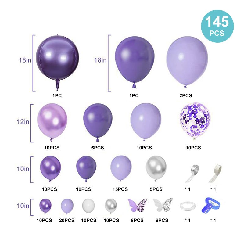 Velkolepá girlanda z balónků ve fialové barvě vytvoří vskutku slavnostní atmosféru. Tato dechberoucí girlanda vypadá krásně připevněná na stěně nad stolem jako hlavní dekorace vaší oslavy. Můžete ji přimontovat nad vchod a vytvořit tak velkolepou bránu. Tato elegantní a šik dekorace přitáhne pozornost a potěší všechny hosty. Ideální na svatbu, křest, narozeniny, první přijímání, výročí nebo jinou luxusní oslavu. Díky fenomenální balónkové výzdobě krásně zvýrazníte místo pro focení na památku. Nainstalujte pod girlandu barevně sladěný závěs. Na jeho pozadí položte kytici heliových balónků, připravte bar nebo sladký stůl. Dopřejte svým hostům nezapomenutelnou zábavu při pořizování šťastných fotografií z večírku.