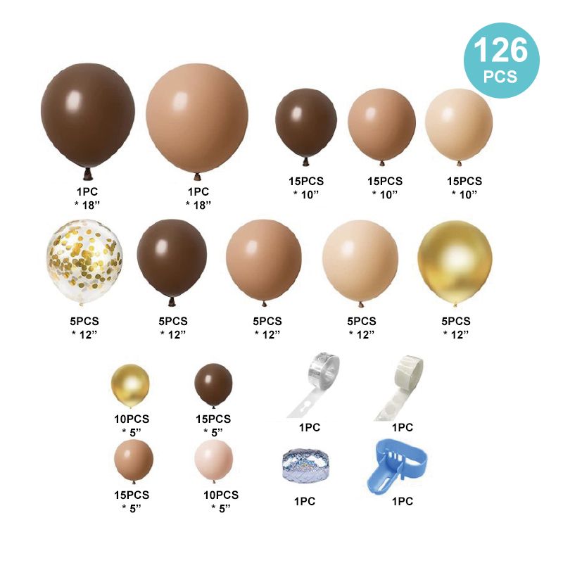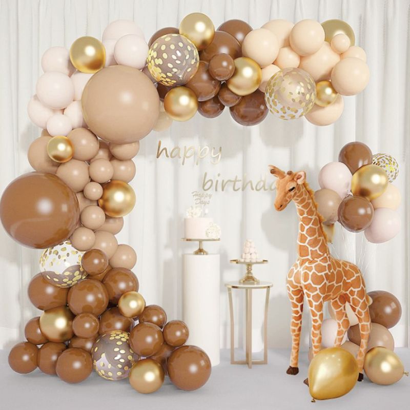 Velkolepá girlanda z balónků v hnědé barvě vytvoří vskutku slavnostní atmosféru. Tato dechberoucí girlanda vypadá krásně připevněná na stěně nad stolem jako hlavní dekorace vaší oslavy. Můžete ji přimontovat nad vchod a vytvořit tak velkolepou bránu. Tato elegantní a šik dekorace přitáhne pozornost a potěší všechny hosty. Ideální na svatbu, křest, narozeniny, první přijímání, výročí nebo jinou luxusní oslavu. Díky fenomenální balónkové výzdobě krásně zvýrazníte místo pro focení na památku. Nainstalujte pod girlandu barevně sladěný závěs. Na jeho pozadí položte kytici heliových balónků, připravte bar nebo sladký stůl. Dopřejte svým hostům nezapomenutelnou zábavu při pořizování šťastných fotografií z večírku.