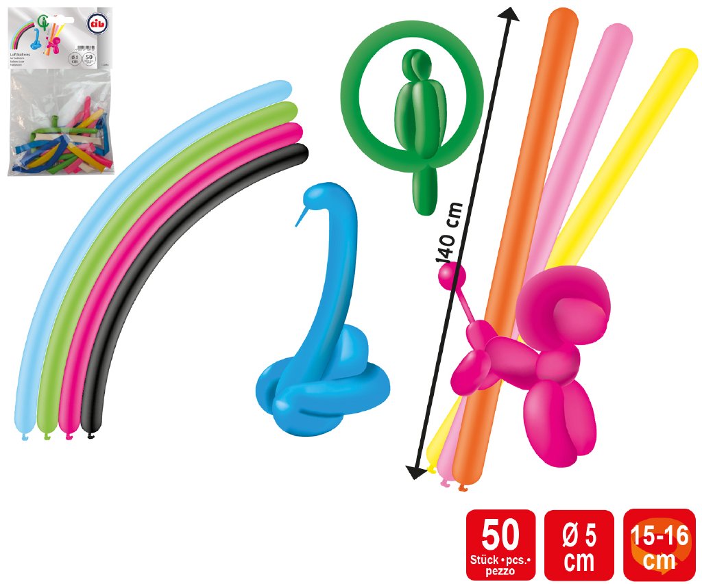 S těmito balónky můžete vytvořit nejrůznější díla. Nafoukněte je, svažte je a buďte s nimi kreativní. Díky tomu bude vaše párty ještě zábavnější! Modelovací balonky jsou dlouhé 140 cm.