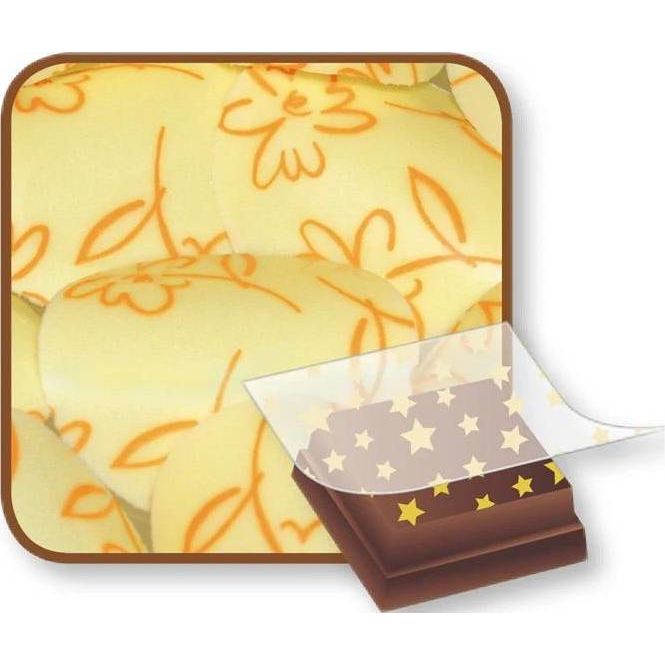 Rozměr: 36,5 x 25 cm (vzor cca 33,5 x 23 cm) Fólie na dekoraci čokolády k použití zejména na pralinky, obtisky na dorty s čokoládovou polevou a ostatní čokoládové výrobky