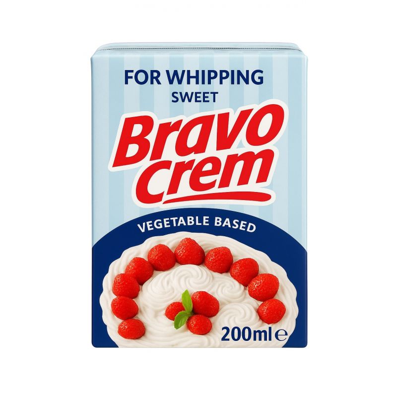 Rostlinná šlehačka Bravo Cream 200 ml nabízí stabilní a nadýchanou alternativu klasické šlehačky pro dezerty, dorty a náplně bez mléka.