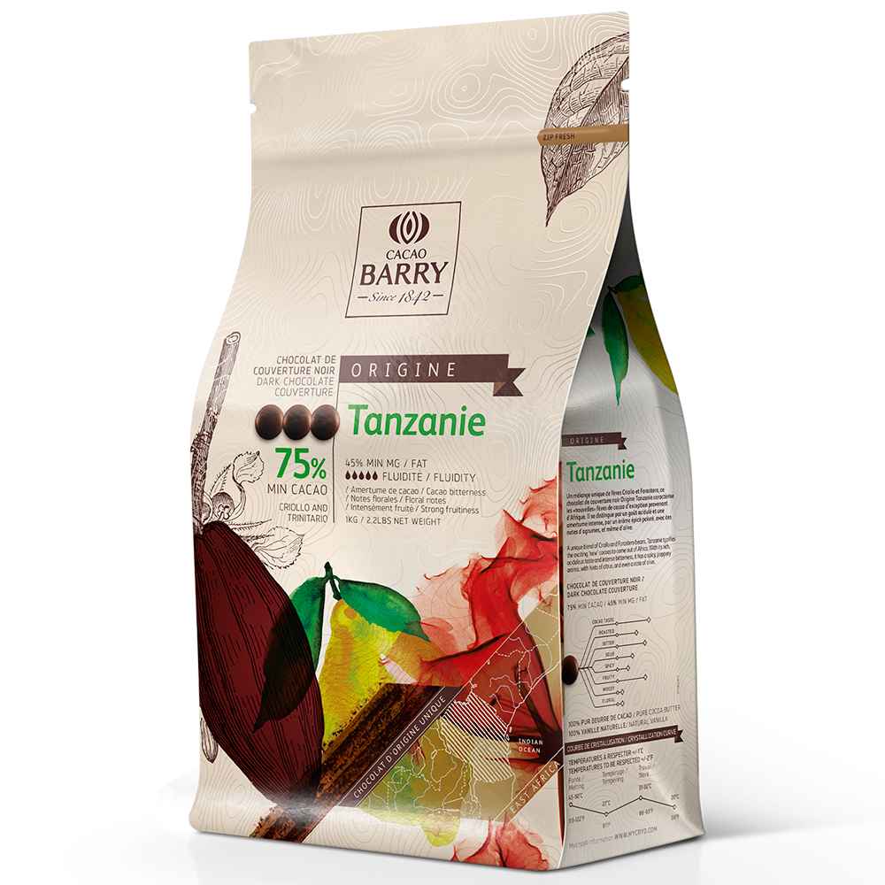 CACAO BARRY Single Origin Tanzanie Hořká 75% čokoláda je dokonalým příkladem toho, jak jedinečná chuť a aroma mohou vzniknout díky konkrétnímu prostředí, ve kterém se kakaové boby z Tanzanie pěstují. Tato čokoláda Origin je vyrobena pouze z kakaových bobů z Tanzanie, což jí propůjčuje výjimečný charakter. Její chuťový profil se může měnit s každou sklizní, připomínající podobný fenomén jako u vína.