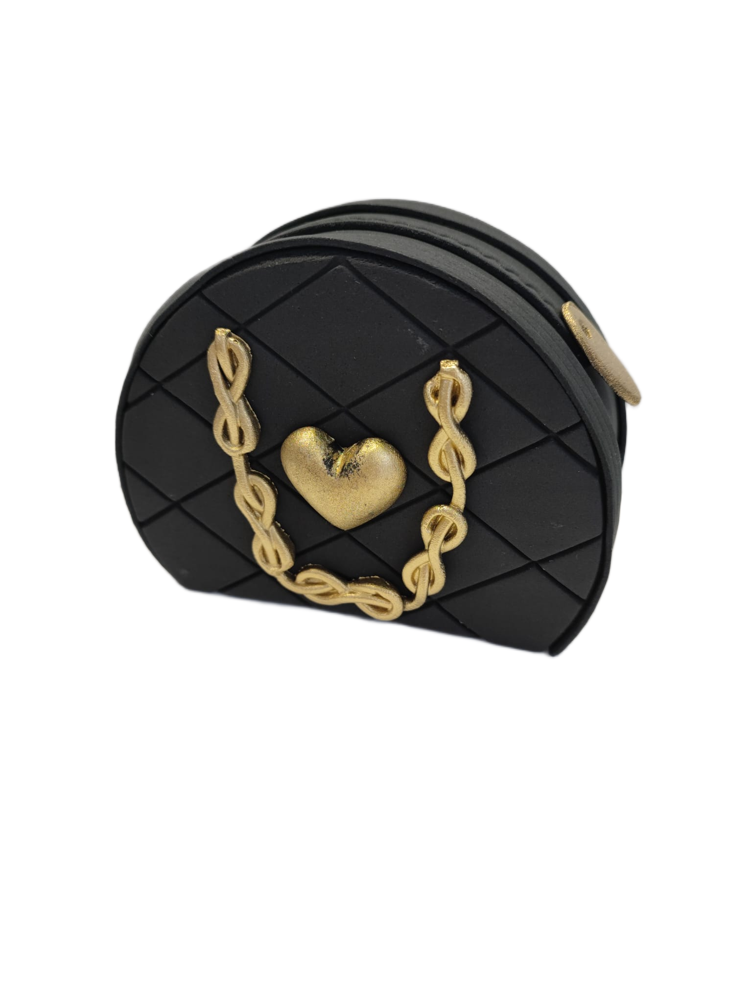 Černá kabelka se zlatými dekoracemi je figurka, která na dortu působí neuvěřitelně stylově a sofistikovaně. Každý její prvek – od jemných švů, přes strukturu materiálu až po drobné zlaté prvky – je ručně vytvořený s precizností, která připomíná práci módního návrháře. Díky kombinaci hluboké černé a zářivě zlaté získá dort nádech luxusu a stane se dokonalým dárkem pro milovnice módy, oslavenkyně nebo dámy, které mají slabost pro elegantní doplňky.