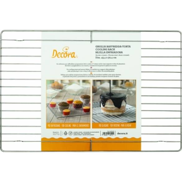 Používá se k chlazení sladkých a slaných druhů pečiva. Je také vynikající jako podpora během fáze polévání dortu a spočívající na podnose, umožňuje okapání přebytečné polevy. Před a po každém použití důkladně omyjte. Rozměry 45,4 x 30,4 cm.