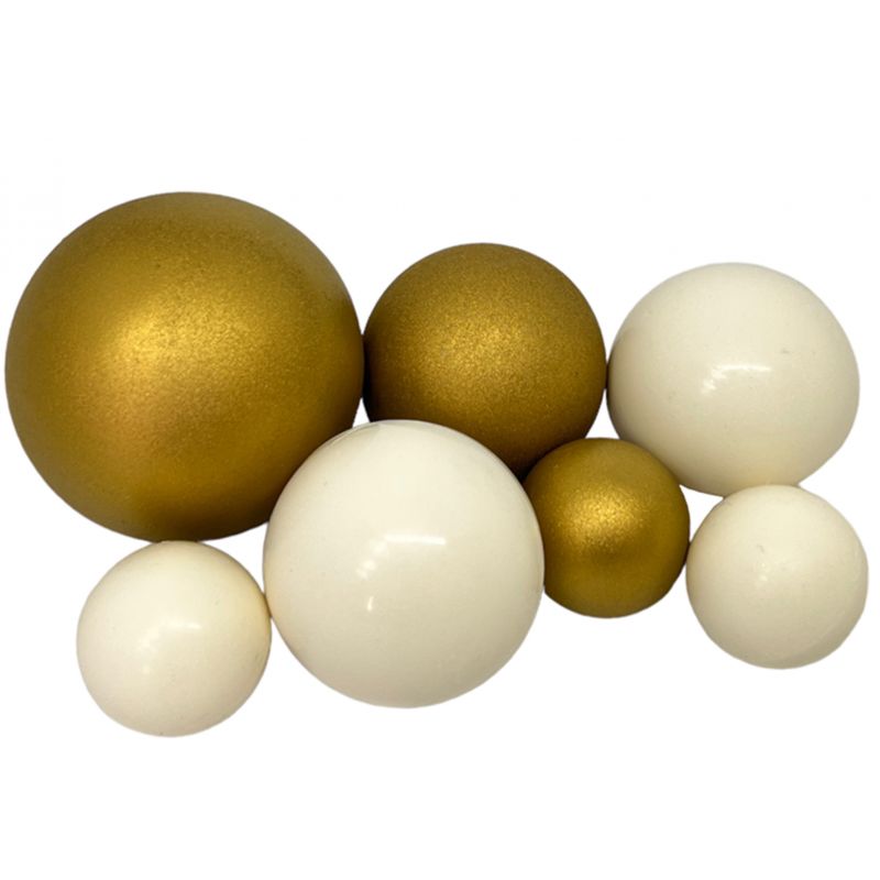 Sada čokoládových koulí, bílé a zlaté. Balení 7 ks.