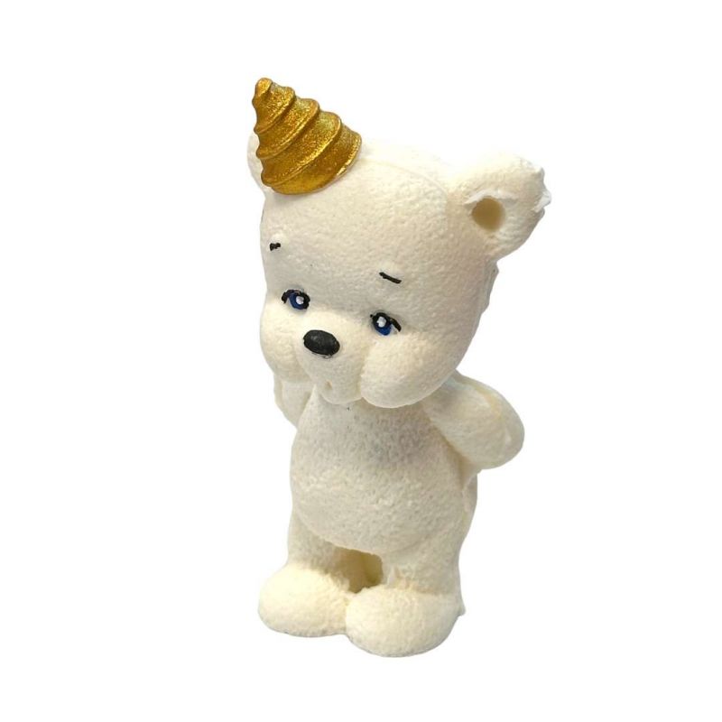 Čokoládový medvídek bílý s kloboučkem.