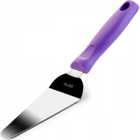 Nerezová stěrka se zahnutou a zkosenou čepelí pro mnoho cukrářských, ale i kuchařských činností. Velmi snadno se s ní nanášejí a roztírají krémy a polevy i na špatně přístupných místech. Může se mýt v myčce nádobí.
