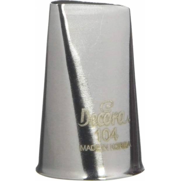 Kovová cukrářská zdobící špička 104 vám zaručí přesnou a jedinečnou výzdobu. Špičku můžete použít se zdobícím sáčkem opakovaně. Je vyrobená z nerezové oceli, na povrchu nezůstávají skvrny od tuku. Není vhodná pro mytí v myčce.