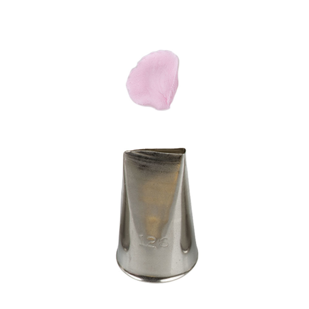 Kovová cukrářská zdobící špička 126 vám zaručí přesnou a jedinečnou výzdobu. Špičku můžete použít se zdobícím sáčkem opakovaně. Je vyrobená z nerezové oceli, na povrchu nezůstávají skvrny od tuku. Není vhodná pro mytí v myčce.