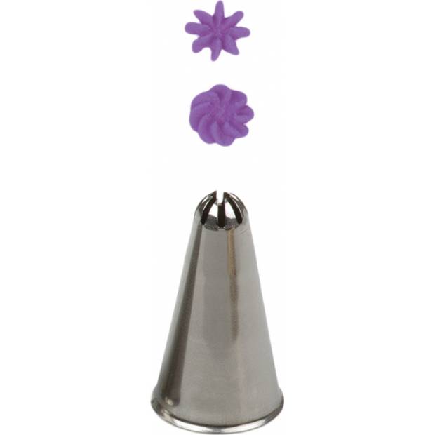 Kovová cukrářská zdobící špička 133 vám zaručí přesnou a jedinečnou výzdobu. Špičku můžete použít se zdobícím sáčkem opakovaně. Je vyrobená z nerezové oceli, na povrchu nezůstávají skvrny od tuku. Není vhodná pro mytí v myčce.