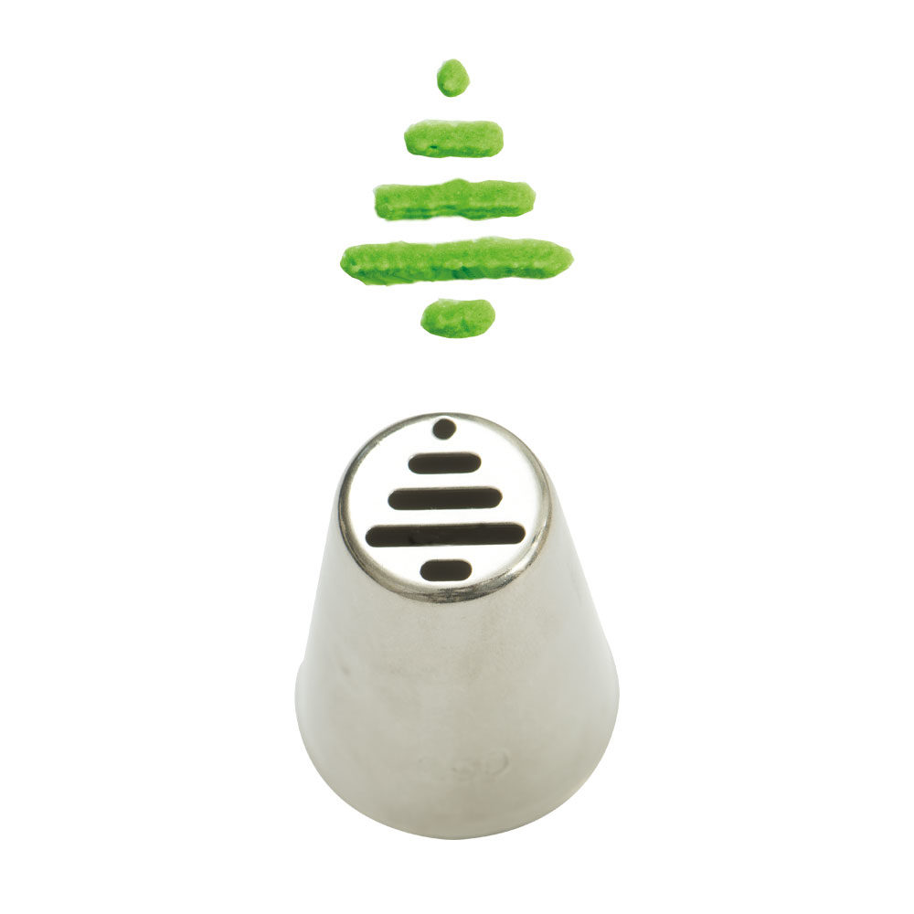 Kovová cukrářská zdobící špička 250 vám jednoduše vytvaruje stromeček. Špička je vyrobená z prvotřídní nerezové oceli.