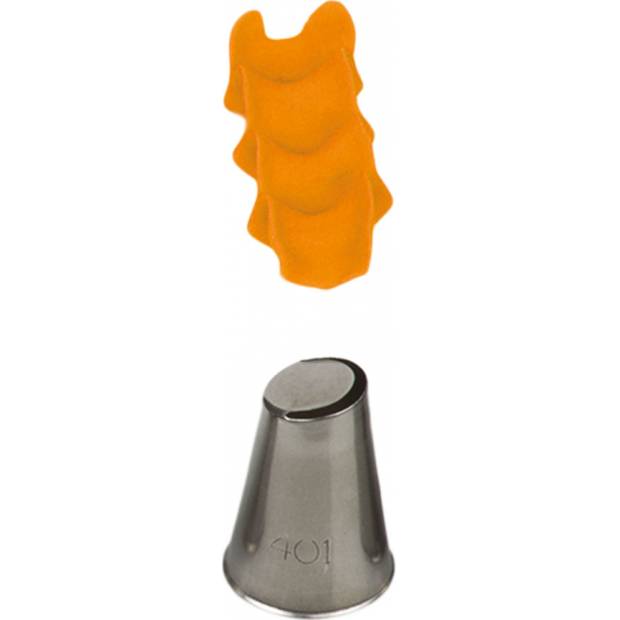 Kovová cukrářská zdobící špička 401 pro přesnou a jedinečnou výzdobu z krému. Špičku můžete použít se zdobícím sáčkem opakovaně. Je vyrobená z nerezové oceli, na povrchu nezůstávají skvrny od tuku. Není vhodná pro mytí v myčce.