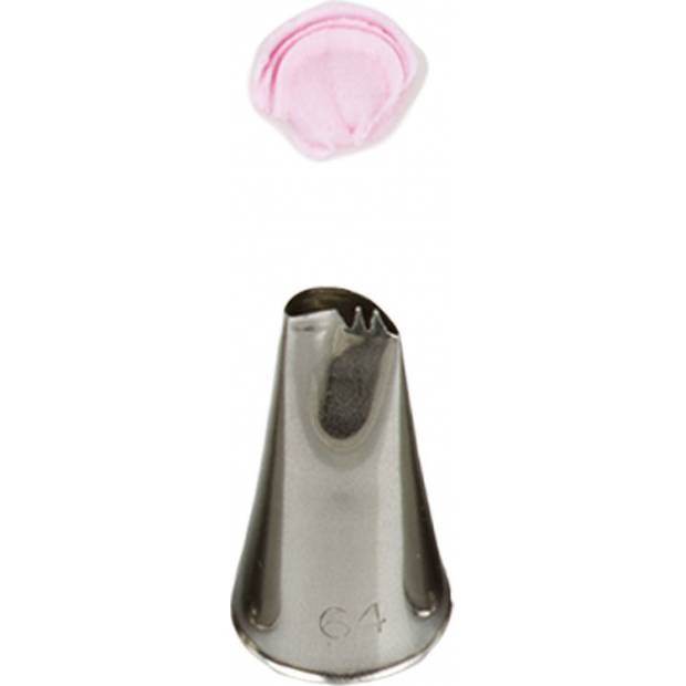 Kovová cukrářská zdobící špička 64 vám jednoduše vytvaruje růžičku. Špička je vyrobená z prvotřídní nerezové oceli.