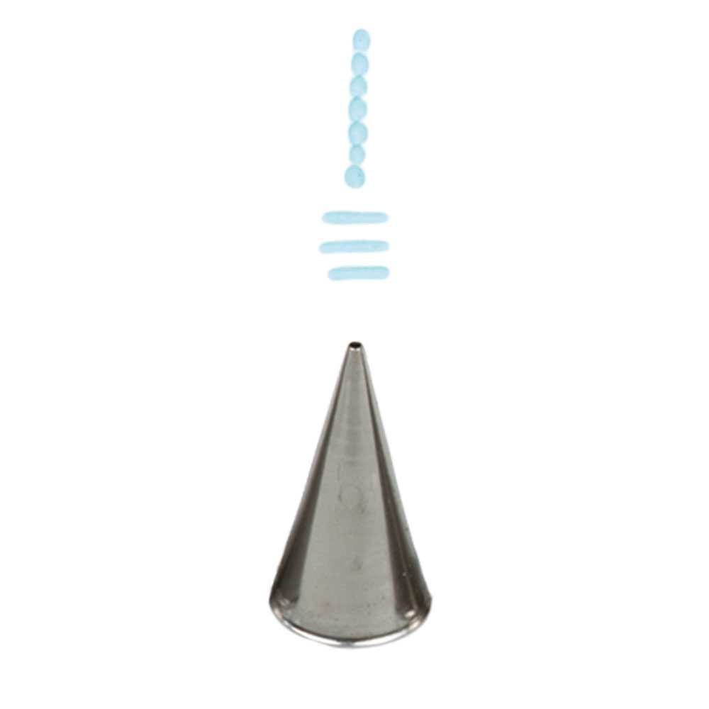 Kovová cukrářská zdobící špička kulatá 0/1, se kterou vytvoříte přesnou a jedinečnou výzdobu. Špičku můžete použít se zdobícím sáčkem opakovaně. Je vyrobená z nerezové oceli, na povrchu nezůstávají skvrny od tuku. Není vhodná pro mytí v myčce.