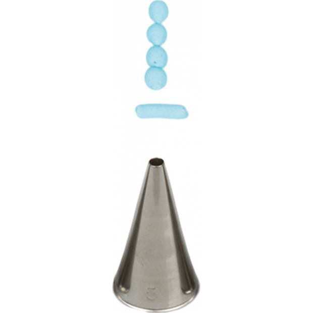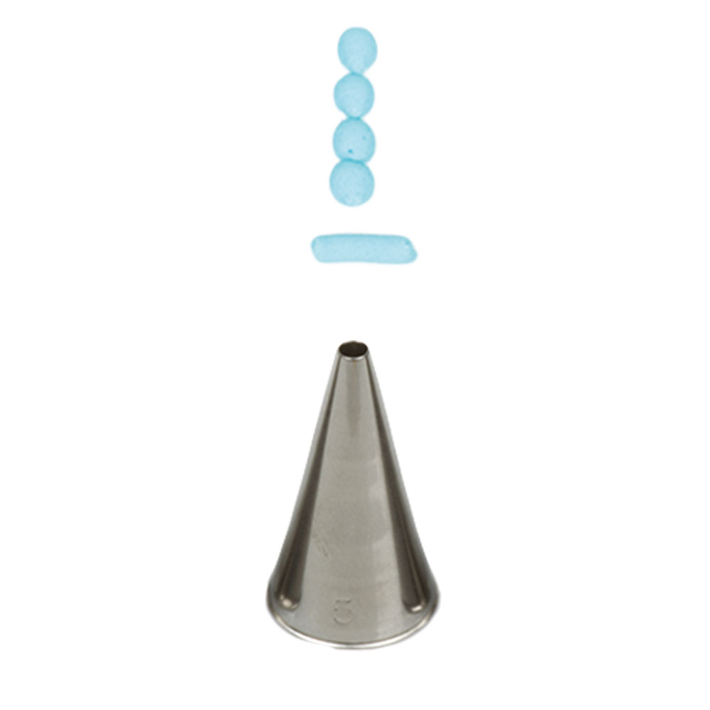 Kovová cukrářská zdobící špička kulatá 5 pro přesnou a jedinečnou výzdobu. Špičku můžete použít se zdobícím sáčkem opakovaně. Je vyrobená z nerezové oceli, na povrchu nezůstávají skvrny od tuku. Není vhodná pro mytí v myčce.