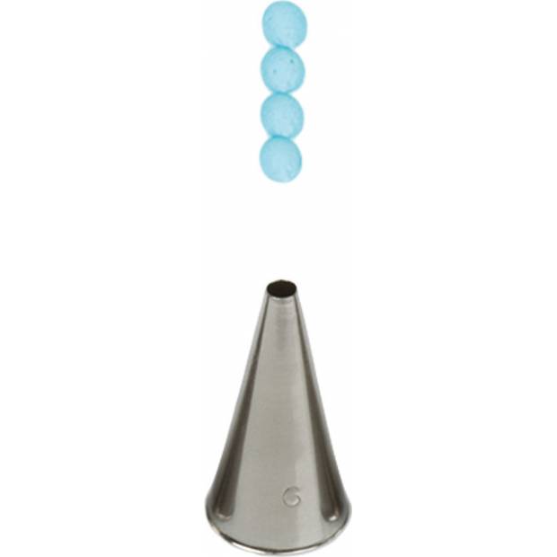 Kovová cukrářská zdobící špička kulatá č. 6, se kterou vytvoříte přesnou a jedinečnou výzdobu. Špičku můžete použít se zdobícím sáčkem opakovaně. Je vyrobená z nerezové oceli, na povrchu nezůstávají skvrny od tuku. Není vhodná pro mytí v myčce.
