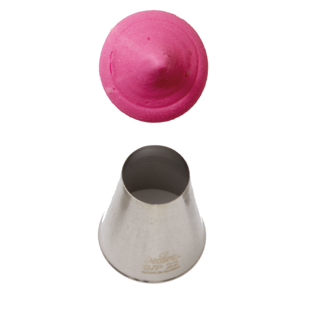 Kovová cukrářská zdobící špička kulatá S/P22 vám zaručí přesnou a jedinečnou výzdobu. Špičku můžete použít se zdobícím sáčkem opakovaně. Je vyrobená z nerezové oceli, na povrchu nezůstávají skvrny od tuku. Není vhodná pro mytí v myčce.