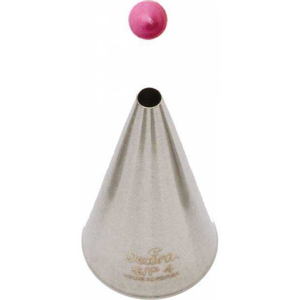Kovová cukrářská zdobící špička kulatá S/P4 vám zaručí přesnou a jedinečnou výzdobu. Špičku můžete použít se zdobícím sáčkem opakovaně. Je vyrobená z nerezové oceli, na povrchu nezůstávají skvrny od tuku. Není vhodná pro mytí v myčce.