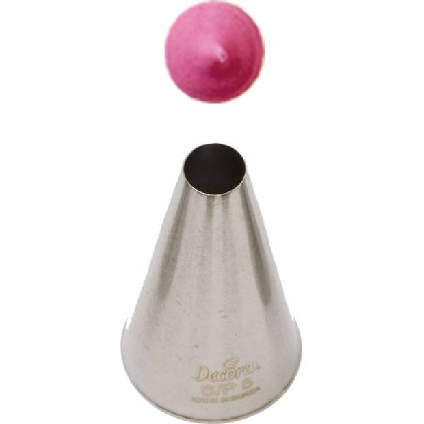 Kovová cukrářská zdobící špička kulatá S/P8 vám zaručí přesnou a jedinečnou výzdobu. Špičku můžete použít se zdobícím sáčkem opakovaně. Je vyrobená z nerezové oceli, na povrchu nezůstávají skvrny od tuku. Není vhodná pro mytí v myčce. Špička je vzodná na makronky.