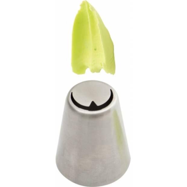 Kovová cukrářská zdobící špička 1 list vám zaručí přesnou a jedinečnou výzdobu. Špičku můžete použít se zdobícím sáčkem opakovaně. Je vyrobená z nerezové oceli, na povrchu nezůstávají skvrny od tuku. Není vhodná pro mytí v myčce.