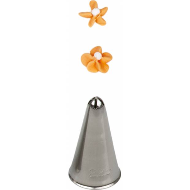 Kovová cukrářská zdobící špička řezaná 225, se kterou zaručeně vytvoříte velmi přesnou a jedinečnou výzdobu. Špičku můžete použít se zdobícím sáčkem opakovaně. Je vyrobená z nerezové oceli, na povrchu nezůstávají skvrny od tuku. Není vhodná pro mytí v myčce.