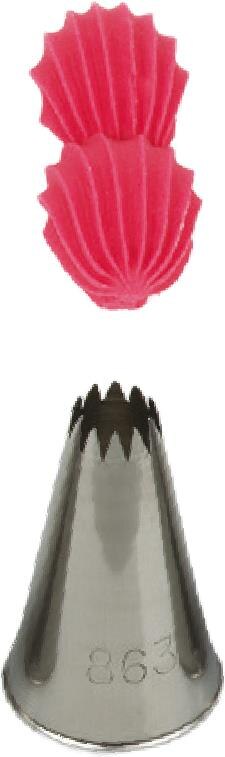 Kovová cukrářská zdobící špička řezaná 863/4B vám zaručí přesnou a jedinečnou výzdobu. Špičku můžete použít se zdobícím sáčkem opakovaně. Je vyrobená z nerezové oceli, na povrchu nezůstávají skvrny od tuku. Není vhodná pro mytí v myčce.