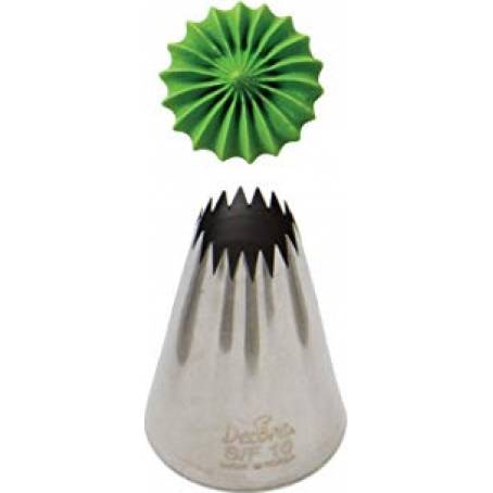 Kovová cukrářská zdobící špička řezaná S/F16 vám zaručí přesnou a jedinečnou výzdobu. Špičku můžete použít se zdobícím sáčkem opakovaně. Je vyrobená z nerezové oceli, na povrchu nezůstávají skvrny od tuku. Není vhodná pro mytí v myčce.