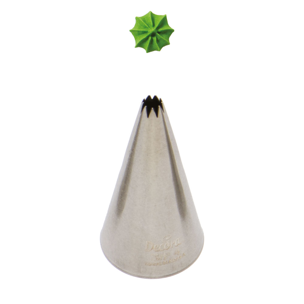 Kovová cukrářská zdobící špička řezaná S/F4 vám zaručí přesnou a jedinečnou výzdobu. Špičku můžete použít se zdobícím sáčkem opakovaně. Je vyrobená z nerezové oceli, na povrchu nezůstávají skvrny od tuku. Není vhodná pro mytí v myčce.