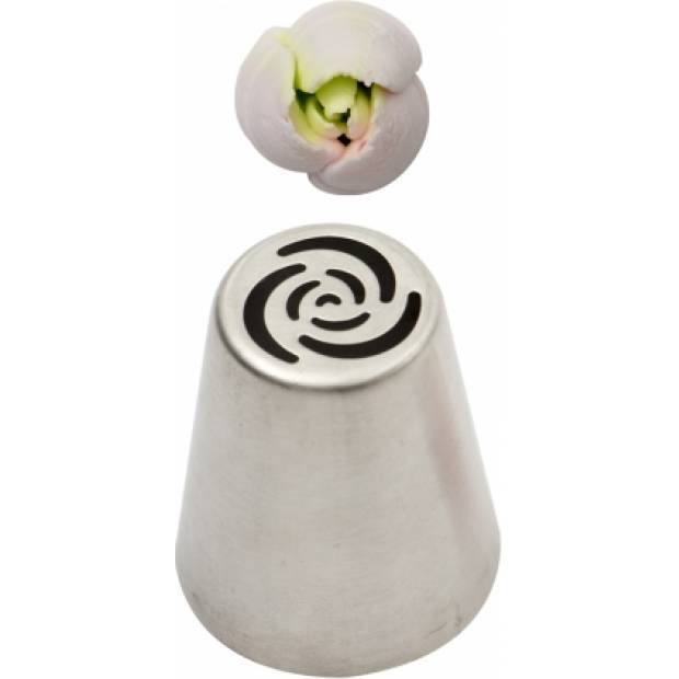 Kovová cukrářská zdobící špička ruská tulipán č.27 vám zaručí přesnou a jedinečnou výzdobu. Špičku můžete použít se zdobícím sáčkem opakovaně. Je vyrobená z nerezové oceli, na povrchu nezůstávají skvrny od tuku. Není vhodná pro mytí v myčce.