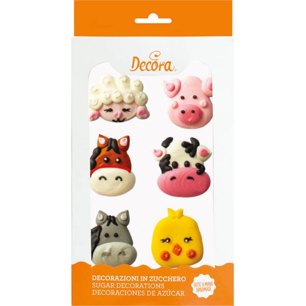 Cukrové dekorace zvířátka z farmy jsou připravené k přímému použití. Jsou vyráběny ručně, s obsahem přírodních extrakčních barviv. Ideální pro zdobení dortů, košíčků a dalších dezertů. Tyto dekorace jsou již hotové, není potřeba je dále upravovat. Velikost figurek je 2,5-4 cm. V balení 6 ks.