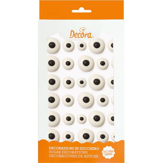 Cukrová dekorace ve tvaru očí pro dozdobení figurek či dortů a dalších zajímavých moučníků nejen na Halloween. V balení 30 ks.