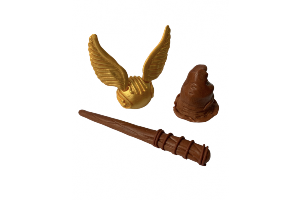 Cukrová dekorace na dort sada Harry Potter. V balení: Klobouk, zlatá střela a hůlka.Překrásná dekorace pro milovníky Harryho Pottera vykouzlí z každého dortu kouzelnou