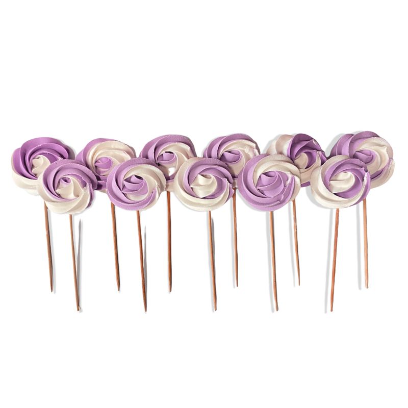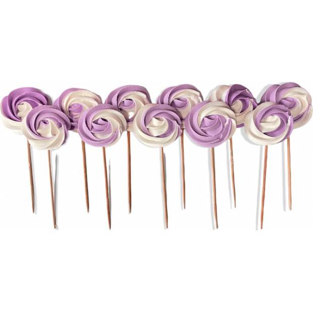 Elegantní cukrářská dekorace v podobě ručně vyráběných lízátek na špejli je skvělým způsobem, jak zpestřit sladký stůl nebo dodat jedinečný charakter dortům a dezertům. Barevné lízátka potěší nejen svým vzhledem, ale i pečlivým zpracováním, jsou odolná, stabilní a nedrolí se. Balení obsahuje 12 kusů, které se perfektně hodí jako působivá dekorace na večírky, oslavy narození dítěte a narozeniny.
