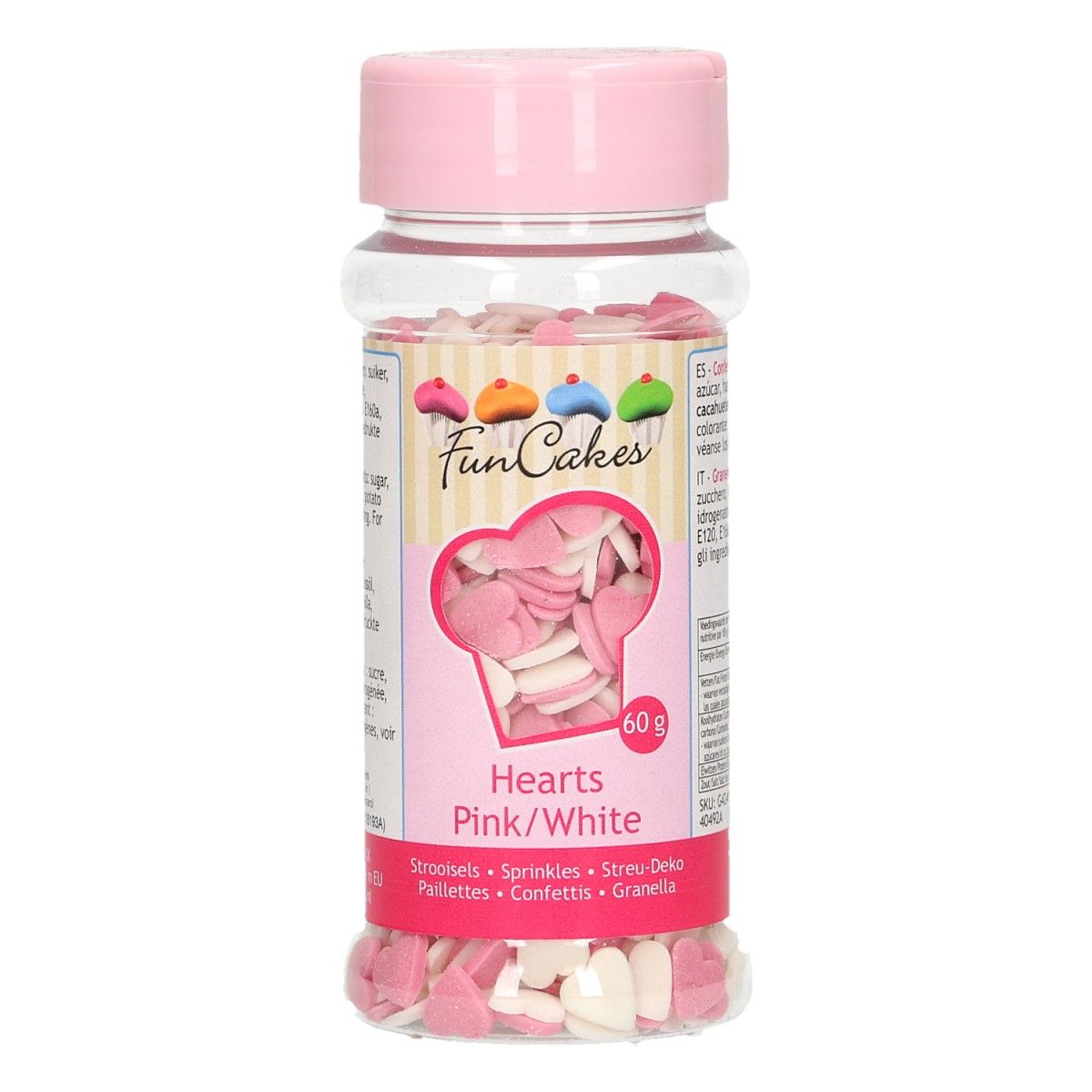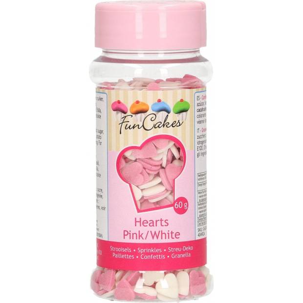 Jedlá srdíčka od FunCakes o velikosti 7 mm. S těmito srdíčky existuje mnoho různých možností výzdoby, například vytvarování do květiny nebo ohraničení dortu.