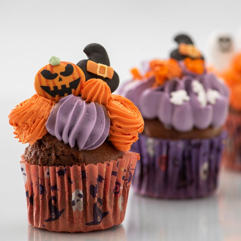 Objevte naše cukrové figurky na pečení, speciálně navržené k ozdobení cupcakes, dortů, sušenek a dezertních stolů během těchto svátků. Dýně, duchové a mnoho dalšího, vyrobené tak, aby vašim výtvorům dodaly zábavný, barevný a lahodný nádech. S těmito strašidelnými cukrovými dekoracemi od Dekory je teď opravdový Halloween. Sada obsahuje 4 různé, detailní halloweenské postavičky, které můžete použít k ozdobení dortů, muffinů a sušenek.