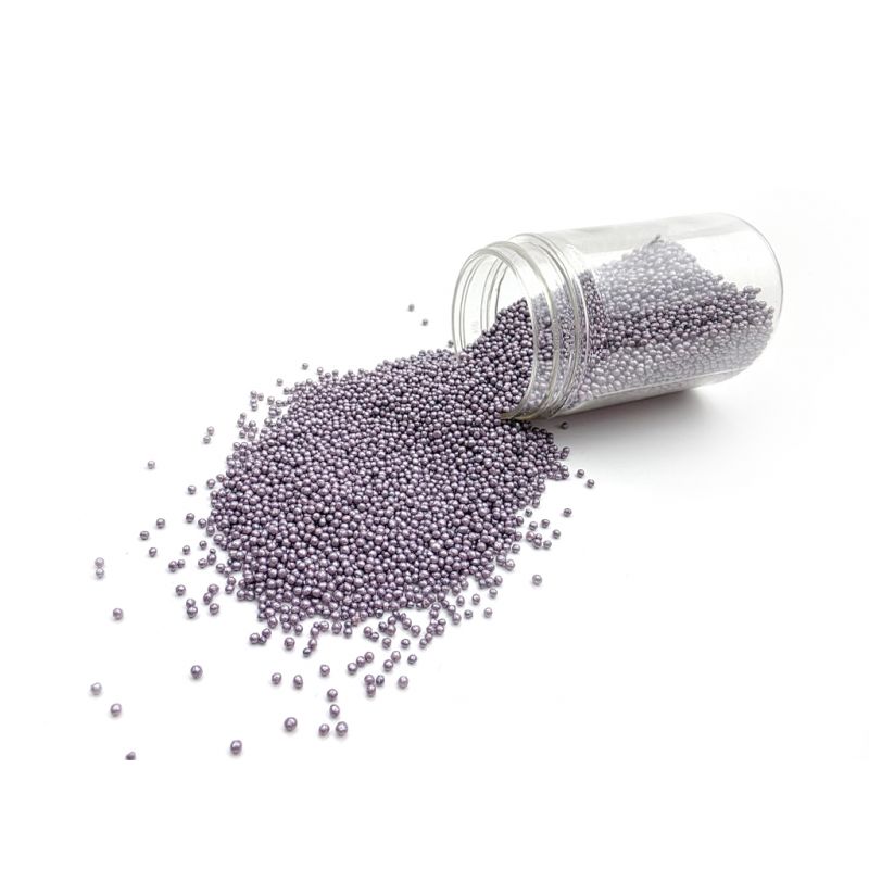 Fialové metalické cukrářské posypky jsou osvědčeným způsobem, jak zajímavě ozdobit dort nebo jinou sladkou pochoutku. Hotové doplňky, jako jsou cukrové perly, vám umožní vytvořit krásnou dekoraci ve vaší domácí kuchyni. Používají je také profesionální cukráři k dozdobení dortů a jiného pečiva. Perličky máme v různých barvách, velikostech a tvarech. Díky tomu je lze snadno sladit s dalšími detaily na pečivu nebo dezertech. Perličky na zdobení dortů jsou krásným doplňkem hladkého povrchu dortů. Dají se s nimi zdobit i perníčky, drobné cukroví, muffiny nebo dorty. Jedná se o univerzální dekorace, které vám pomohou doladit vaše chutné pečivo. Další obrovskou výhodou perel je jejich snadná aplikace. Stačí je položit na vámi vybraný povrch a je hotovo. Perly se perfektně hodí k cukrové pastě a dalším. Lze je kombinovat s různými krémy. V naší nabídce najdete jemné cukrové perly, které lze bez obav konzumovat i s dezertem."""