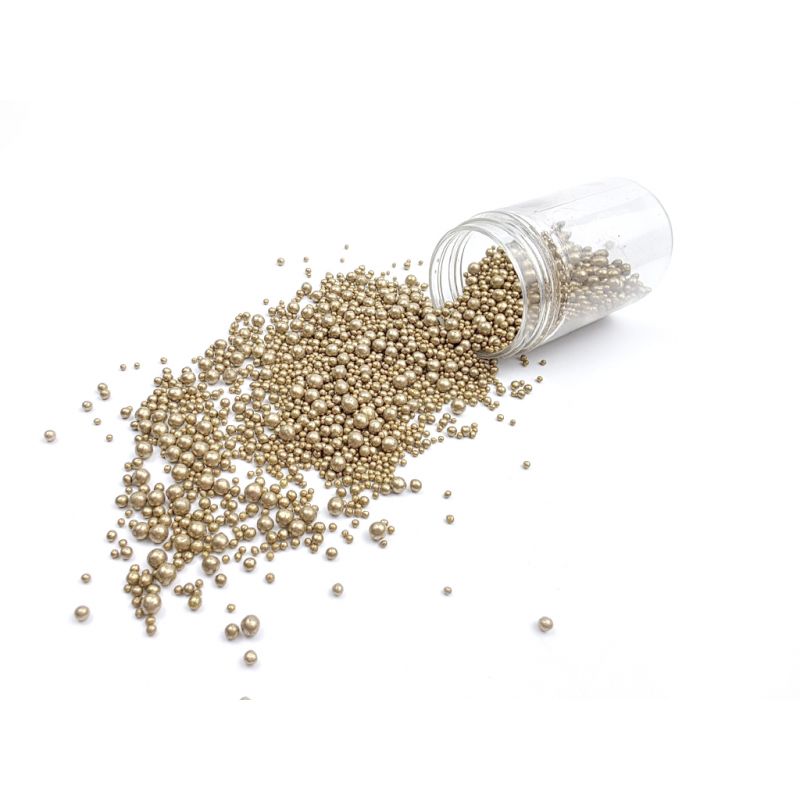 Zlaté perličky pro zdobení dortů, cukroví, zákusků a dalších cukrářských výrobků, 30g.