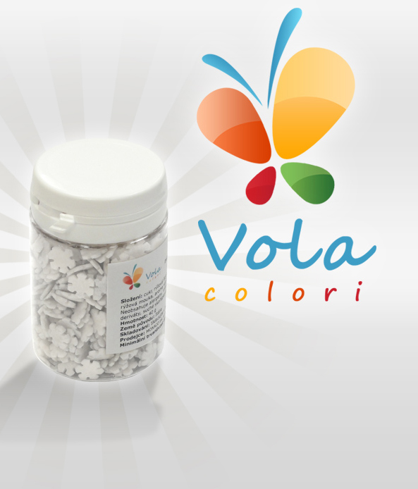 Cukrové sypání ve tvaru sněhových vloček v bílé barvě.