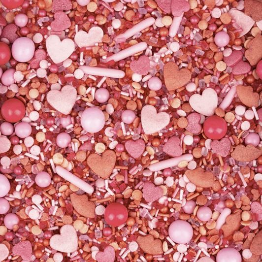 Velká chuťovka pro vaše super dorty cukrové zdobení červeno růžový valentýn. Všechno je tu růžové a červené. Červená pusa na pusu, plus čokoládové kuličky v růžové a růžové, konfety a kuličky v červené a růžové barvě a samozřejmě srdce ve všech velikostech v červené a růžové. Použít toto sypání je jako koukat přes růžové brýle. Je to jako malý výlet do nebe, s motýly v břiše a uhánějícím srdcem - ještě předtím, než sníte dort. Cukrové tyčinky: Podlouhlé tyčinky obsahují tenké, syrové nudle obalené v cukru. Jsou sice nejkrásnější, ale také nejtěžší, co naše směsi nabízejí. Naše střední a velké kuličky jsou všechny lahodně plněné jemnou čokoládou nebo křupavé křupavé. Míchání: Během přepravy se velké posypky a čokoládové kuličky obvykle trhají doprostřed plechovky. Abyste mohli obdivovat plnou nádheru posypek, stačí plechovku vyklopit do misky a nechat se okouzlit.