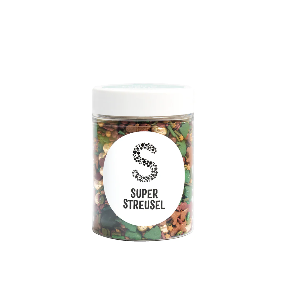 Tyto posypky jsou ideální pro zdobení nejrůznějšího pečiva jako jsou dorty, muffiny, sušenky atd. Tyto jedlé dekorace jsou skvělé pro vánoční zdobení. Tyto kvalitní potraviny lze použít na koblihy, cupcaky, dorty, zmrzlinu, sušenky a mnoho dalšího. Jedlé posypky od Super Streusel přinesou jiskru, lesk a spoustu barev vašim dortům, cupcakům, sušenkám, dezertům, zmrzlině, nápojům, koktejlům, mléčným koktejlům a dalším. Jsou vyrobené z těch nejlepších ingrediencí a přirozeně obarvené pomocí potravinářských barviv dodají barvu a šmrnc každé příležitosti. Posypy Super Streusel jsou dokonalým doplňkem na narozeninové oslavy, svatby nebo jakékoli zvláštní příležitosti a jsou k dispozici v široké škále barev, tvarů a směsí.