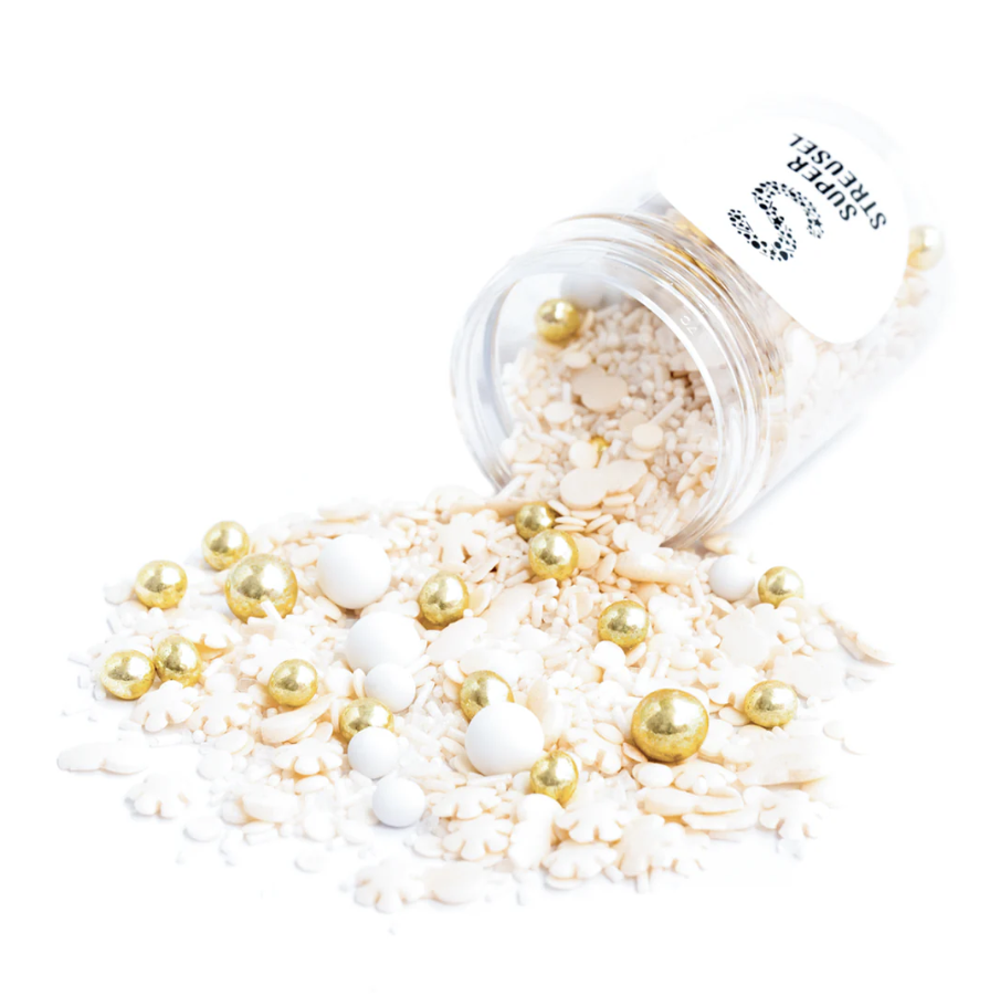 Tyto posypky jsou ideální pro zdobení nejrůznějšího pečiva jako jsou dorty, muffiny, sušenky atd. Tyto jedlé dekorace jsou skvělé pro vánoční zdobení. Tyto kvalitní potraviny lze použít na koblihy, cupcaky, dorty, zmrzlinu, sušenky a mnoho dalšího. Jedlé posypky od Super Streusel přinesou jiskru, lesk a spoustu barev vašim dortům, cupcakům, sušenkám, dezertům, zmrzlině, nápojům, koktejlům, mléčným koktejlům a dalším. Jsou vyrobené z těch nejlepších ingrediencí a přirozeně obarvené pomocí potravinářských barviv dodají barvu a šmrnc každé příležitosti. Posypy Super Streusel jsou dokonalým doplňkem na narozeninové oslavy, svatby nebo jakékoli zvláštní příležitosti a jsou k dispozici v široké škále barev, tvarů a směsí.