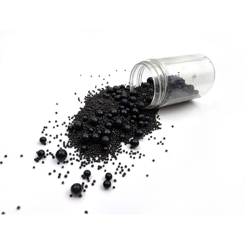 Dejte svým dortům a dezertům zcela nový nádech s tímto mixem cukrového zdobení. Černé perličky a máček vytváří stylovou kombinaci, kterou lze využít dle libosti. Můžete s nimi ozdobit cupcakes, dorty i vánoční cukroví. Posypky budou krásně vypadat na dortících nebo jiném pečivu. Ideální pro různé příležitosti, např. oslava narozenin, jmeniny, svatby, přijímání, rozlučky se svobodou, svátky. Posypky jsou baleny v praktické nádobě pro snadné dávkování a skladování. Skladujte na chladném a suchém místě mimo dosah slunečního záření. Pokud zdobení nasypete na vláčný krém, vlhkost z něj může posypek změkčit. Ale pozor, pokud bude zdobení na vlhkém krému delší dobu, může se z posypku uvolnit i barvivo a to na povrch krému. Pokud chcete, aby větší části dekorace drželi například na potahovém dortu, můžete tento druh zdobení k dortům lepit polotuhou čokoládou, nebo glazurou na perníčky. s posypky pracujte nejlépe nad miskou, či plechem s okrajem. Složení: bílý cukr, pšeničná mouka, melasa, mastek, leštící látka kapol, potravinářská barviva: E102, E122, E133, E152. Nutriční hodnota 100 g výrobku: tuky - 5,5 g, vč. h. nasycené - 1,3 g, sacharidy - 92,0 g, vč. h. cukry – 87 g, bílkoviny – 2,0 g, sůl – 0,01 g. Energetická hodnota (kalorie) na 100 g výrobku: 406 kcal (1697 kJ).