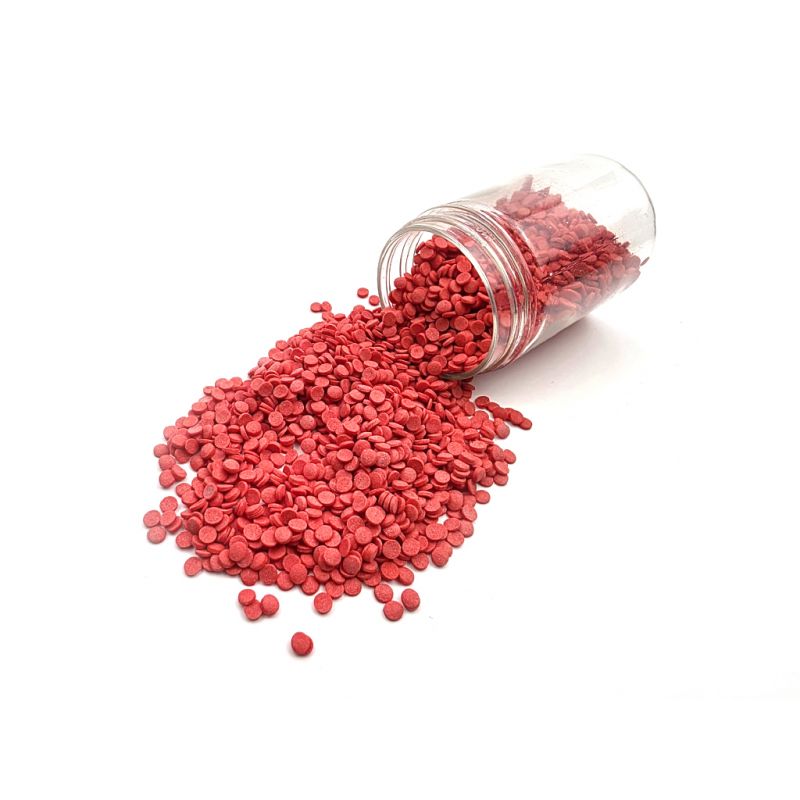 Cukrové zdobení červené perleťové konfety. Balení 80 g.
