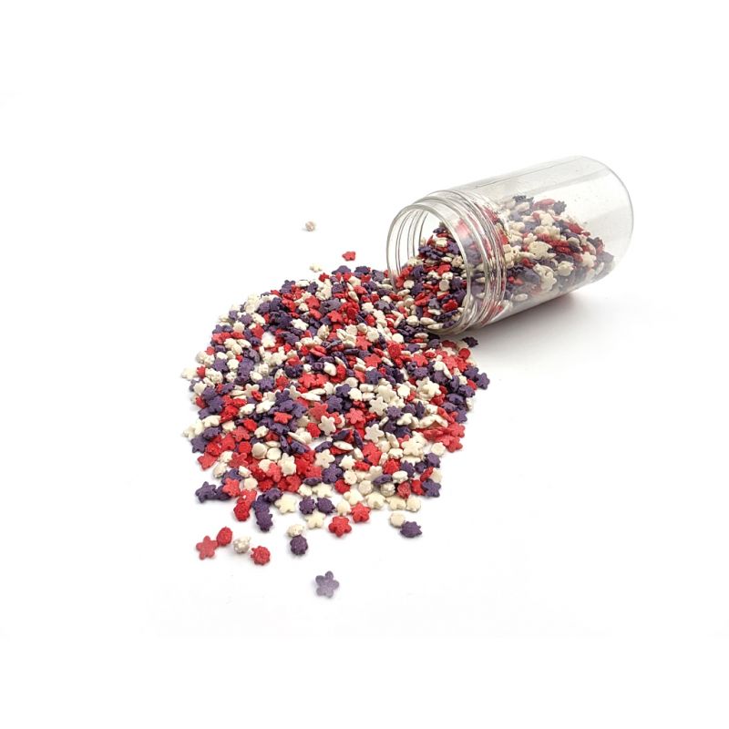 Cukrové zdobení červeno-fialovo-bílý mix 80g