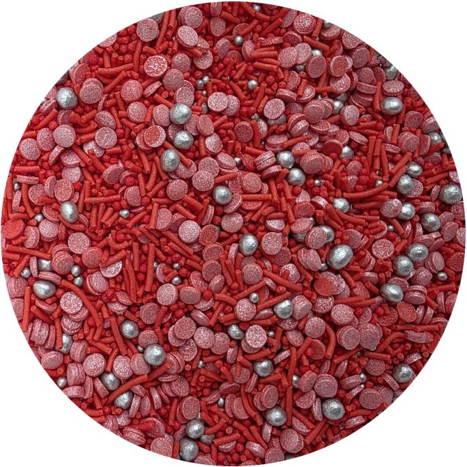 Užijte si jedinečný koktejl cukrového sypání v podobě červených cukrových tyčinek, konfet a stříbrných perliček. I LOVE CAKES v různých tvarech vám pomohou zajímavým způsobem ozdobit muffiny, dorty, koláče, dezerty, cake pops, sušenky a další sladkosti. Posypky budou krásnou ozdobou pečiva na nejrůznější párty, výročí nebo na dort k narozeninám. Cukrové posypky se budou hodit při přípravě sladkostí na sladký stůl. Posypky jsou baleny v praktické nádobě pro snadné dávkování a skladování. Skladujte na chladném a suchém místě mimo dosah slunečního záření.Pokud zdobení nasypete na vláčný krém, vlhkost z něj může posypek změkčit. Ale pozor, pokud bude zdobení na vlhkém krému delší dobu, může se z posypku uvolnit i barvivo a to na povrch krému. Pokud chcete, aby větší části dekorace drželi například na potahovém dortu, můžete tento druh zdobení k dortům lepit polotuhou čokoládou, nebo glazurou na perníčky. S posypkami pracujte nejlépe nad miskou, či plechem s okrajem."