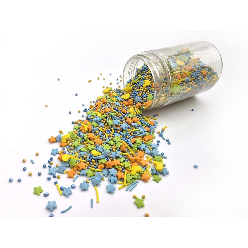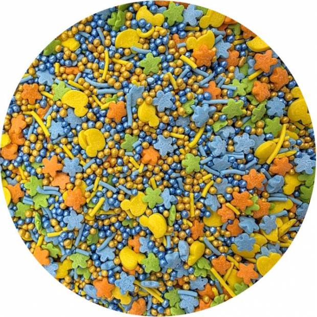 Sypání má podobu barevných kačenek, perliček a dalších tvarů. Jedná se o sladký posyp z řady unikátních produktů od ILOVECAKES. Nemění chuť zdobených výrobků, je vyroben z přírodních barviv a má chuť cukrové pasty. Jedná se o velmi univerzální zdobení, ideální na dekorování cupcaků, sušenek, perníčků, muffinů, dortů, zákusků, pečiva, dortů, pralinek, lanýžů, čokolády, zmrzliny a mnoha dalších sladkých výrobků, zejména těch s krémy a polevou. Je vhodný pro každou příležitost: svatba, karneval, narozeniny, Den matek a mnoho dalších. Baleno v praktické šroubovací dóze. Pokud zdobení nasypete na vláčný krém, vlhkost z něj může posypek změkčit. Ale pozor, pokud bude zdobení na vlhkém krému delší dobu, může se z posypku uvolnit i barvivo a to na povrch krému. Pokud chcete, aby větší části dekorace drželi například na potahovém dortu, můžete tento druh zdobení k dortům lepit polotuhou čokoládou, nebo glazurou na perníčky. s posypky pracujte nejlépe nad miskou, či plechem s okrajem.